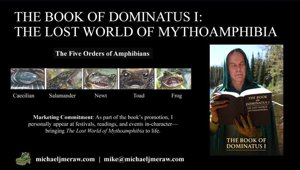• Part I—The Lost World of Mythoamphibia exists as both a completed novel and a feature-length screenplay, with an accompanying film adaptation package developed for cinematic storytellers such as Guillermo del Toro.