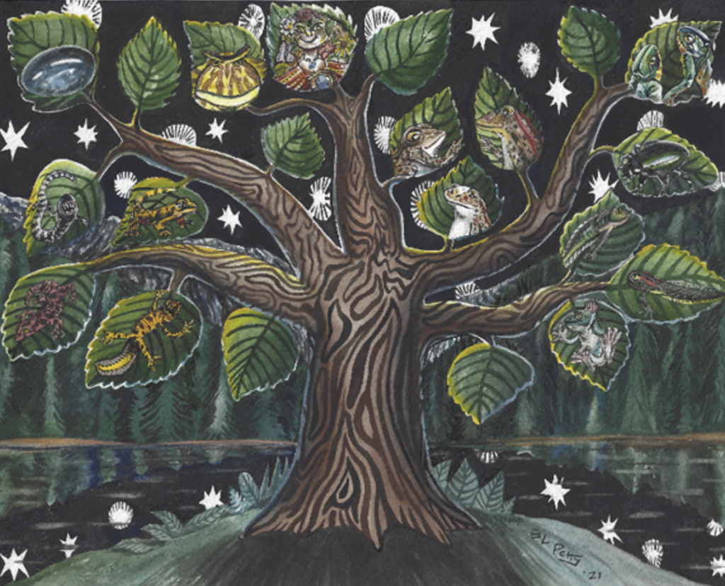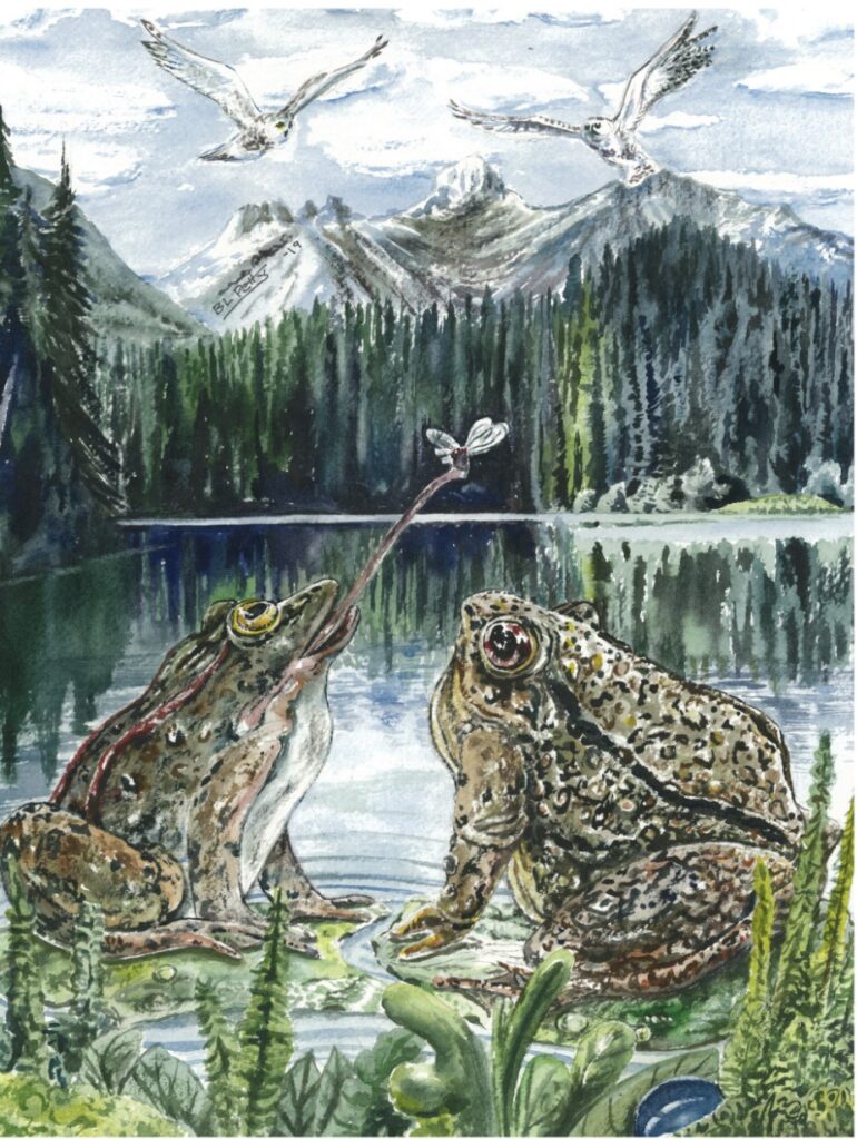 Crown Hyla, Matriarch of the Columbia spotted frogs, and Thorander, an Orgon, Lord of the Rogue Colony, sit in quiet calculation—each secretly plotting, planning, and shaping destinies as they gorge on flies.
